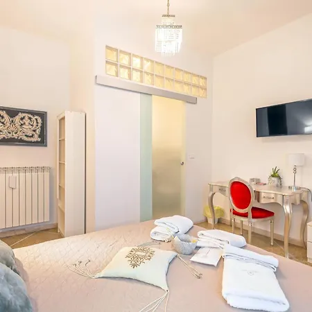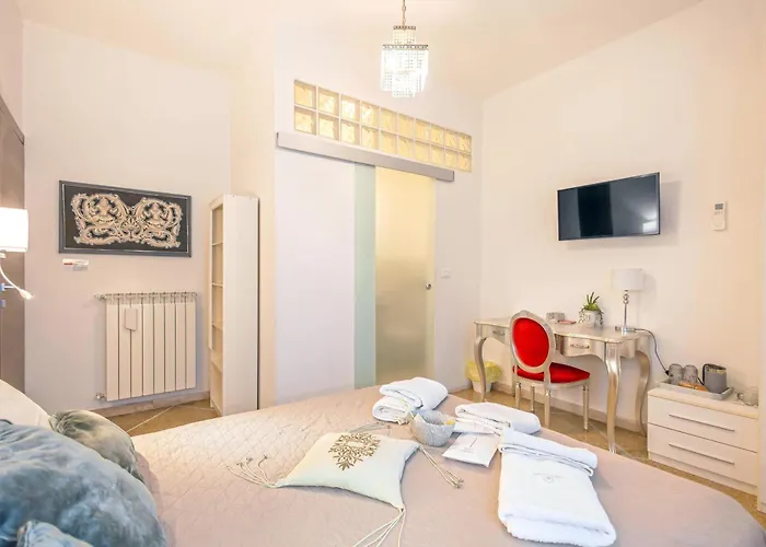 **The accommodations at Migu Point Pisa are beautifully designed to provide an inviting atmosphere.** Each double room features essential amenities such as air conditioning, flat-screen TVs, and tasteful tile or marble flooring that enhance your comfort. Balconies in selected rooms offer charming views, adding a touch of tranquility to your stay. Every room is equipped with a wardrobe, ensuring that your belongings are neatly organized as you unwind after a day of exploration.